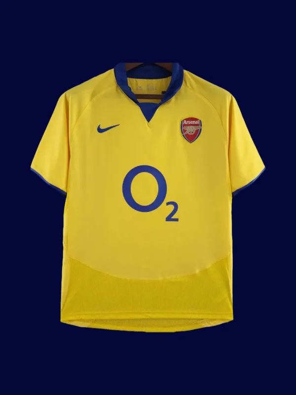 03/05 Arsenal away yellow retro jersey, bold vintage look loved by retro jersey collectors worldwide.