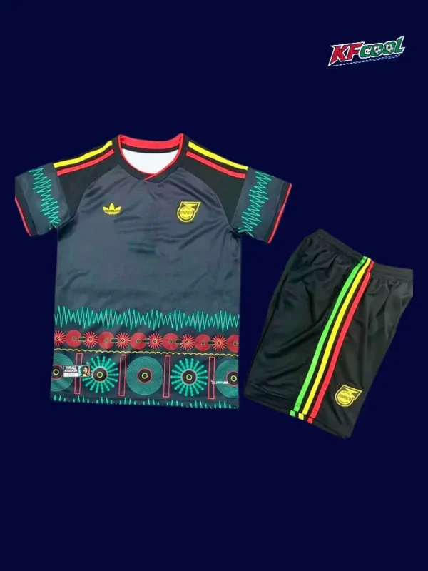 The Jamaica Away Kids Kits 26/27 Fans Version provide young fans with lightweight comfort and flexible movement. Designed for play and everyday wear, this jamaica jersey set reflects the modern jamaica soccer jersey style while offering a complete team jamaica soccer jersey look for youth supporters.