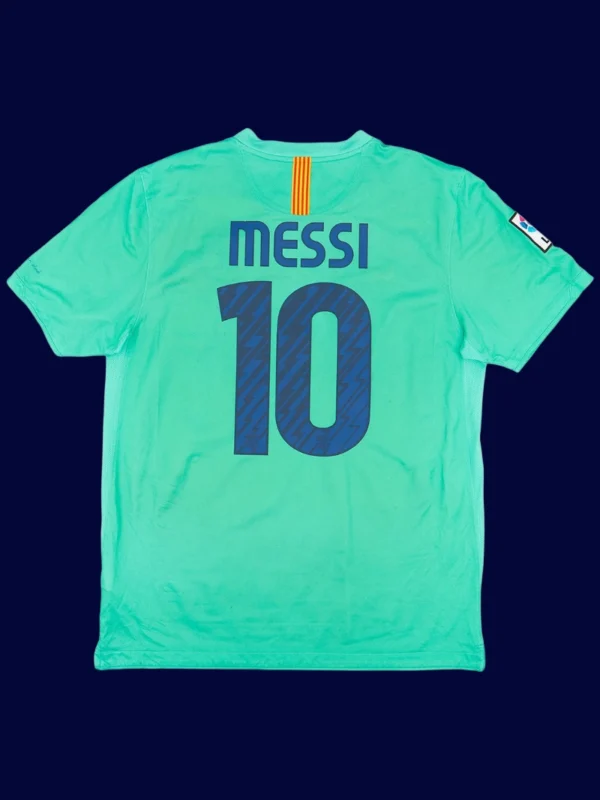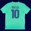 Messi #10 Barcelona away green 10/11 retro club jersey ideal for retro collector fans and breathably light everyday wear.