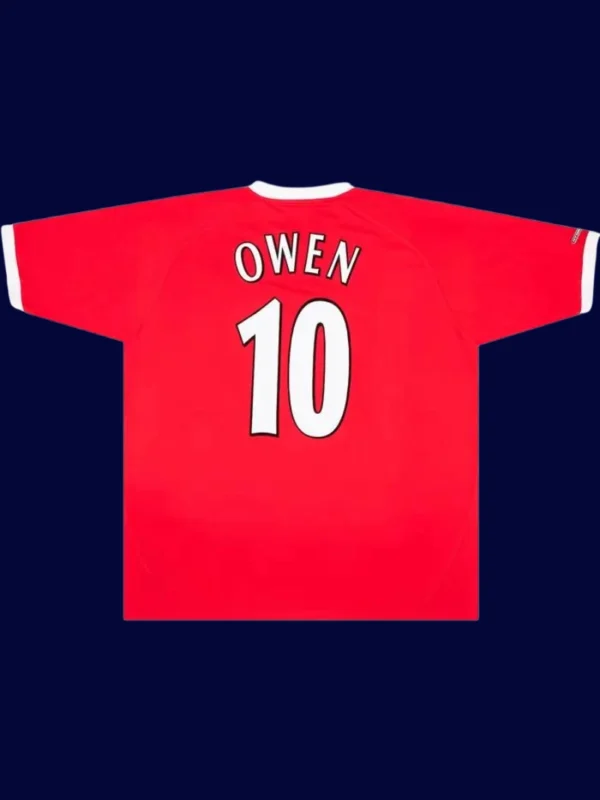 Premium retro club jersey in red, featuring Owen’s iconic number, breathable material, and a high-quality finish for fans and collector grade jerseys.