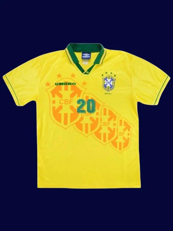 Authentic retro football shirt from Brazil’s 1994 World Cup, breathable and lightweight, perfect for retro jersey collectors and Brazil fans.