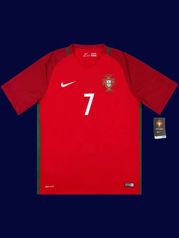 A fan favorite from Euro Cup 2016, this Ronaldo Portugal home red retro jersey offers premium quality with lightweight, breathable design and iconic look.