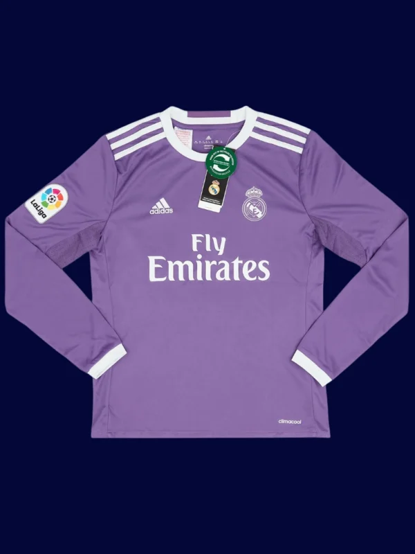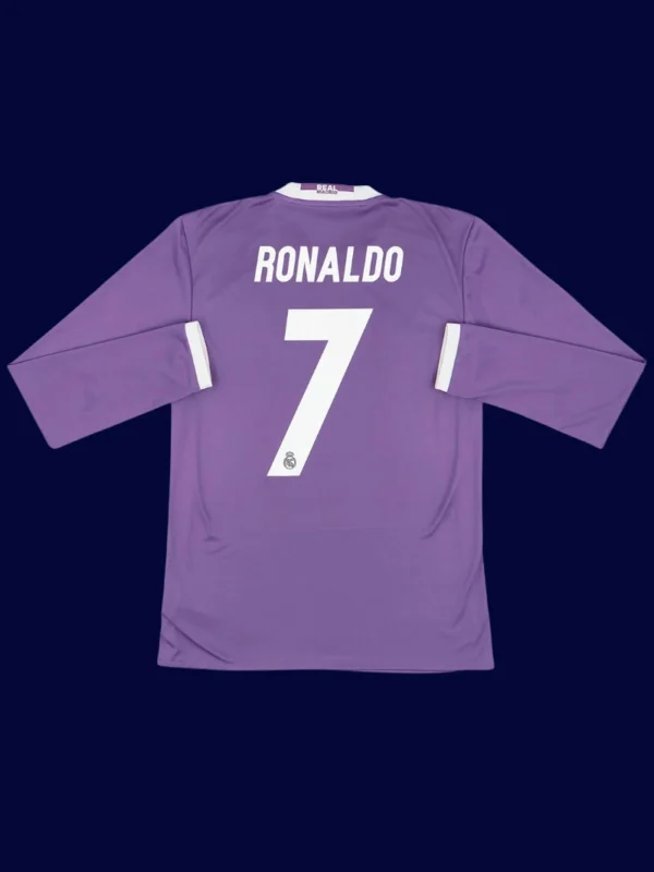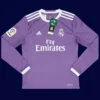 High-quality retro jersey for Ronaldo fans, this Real Madrid away long sleeve 16/17 edition combines breathable material with vintage style and comfort.