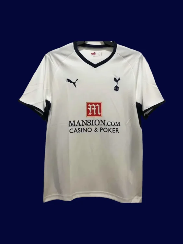 08/09 Tottenham home white retro jersey, clean classic design with breathable fit, ideal discount football jersey for fans.