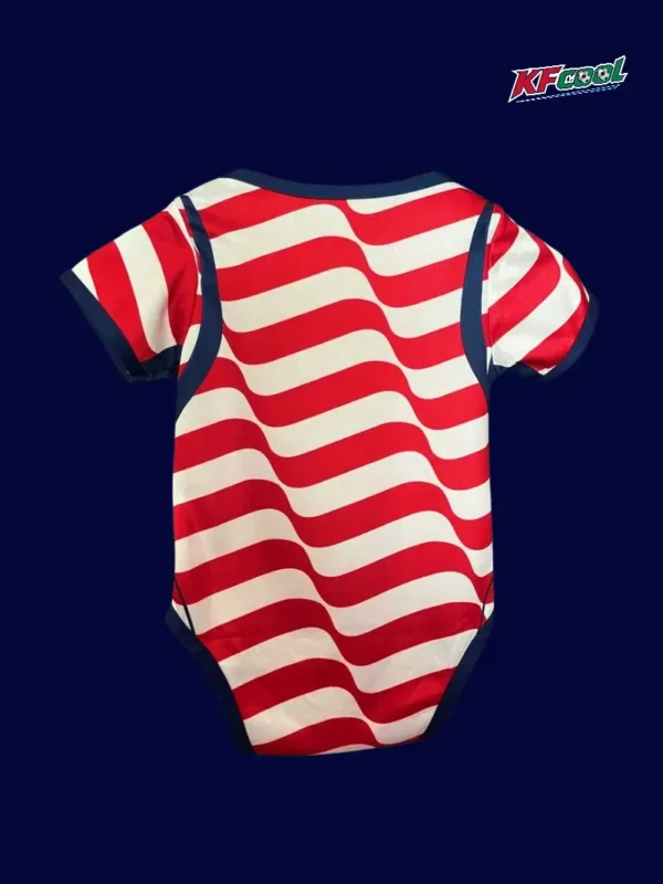 The United States men’s national soccer team Red White Babysuit Infant Crawl 26/27 offers soft breathable fabric and a comfortable fit designed for infants. Inspired by the classic united states soccer kit style, this piece reflects the look of a united states jersey and the modern 2026 usa jersey design, giving young fans a stylish way to show their team spirit.